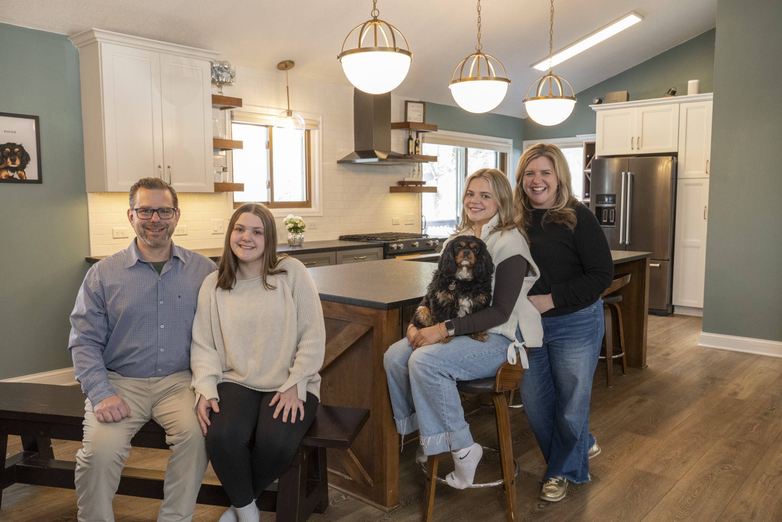 Welcome to this late-80s multilevel home in Eagan. This very active family of four, plus Auggie the dog, loves being the place where friends and family converge. This main-floor complete remodel included removing walls, reconfiguring the kitchen, adding a powder room, and rearranging the laundry. The once-walled-off main floor is now wide open and perfect for entertaining.